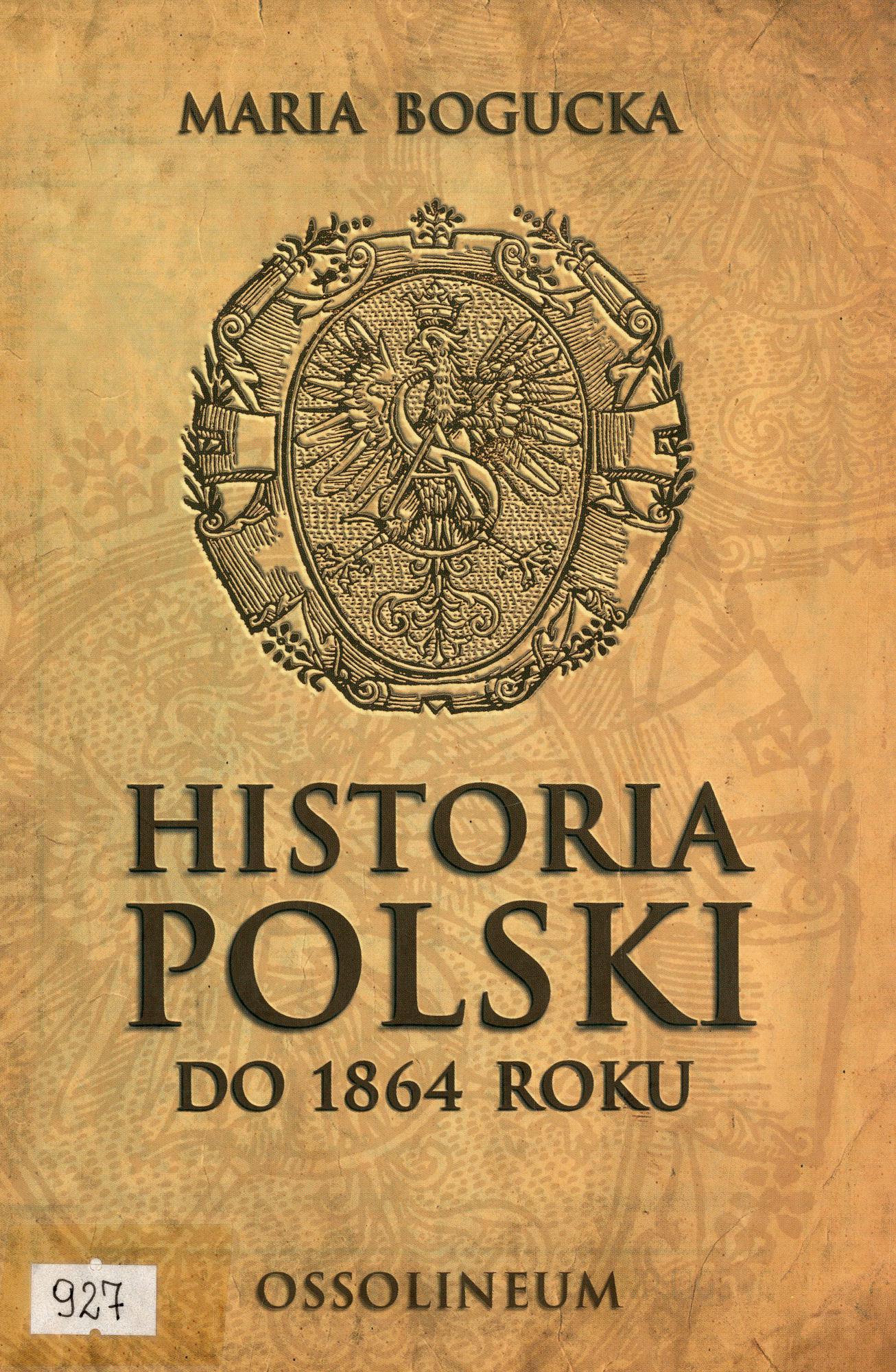 Historia Polski do 1864 roku / Maria Bogucka. - Wrocław, Warszawa : Zakł. Nar. im. Ossolińskich, cop. 1999. - 377 s., [2] s. tabl. złoż. luz. : il., mapy kolor. ; 24 cm.