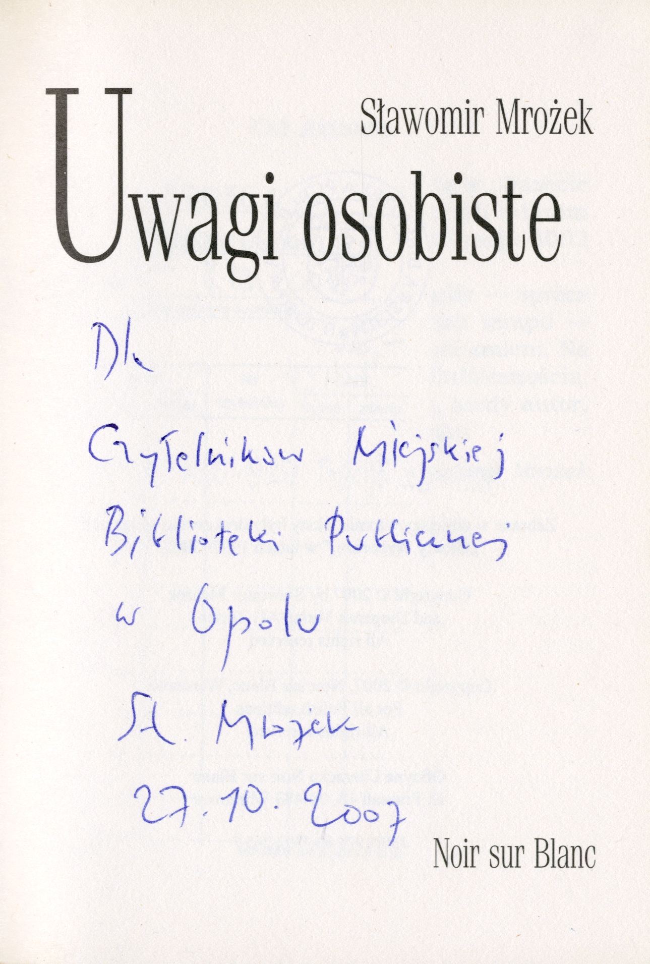 Uwagi osobiste / Sławomir Mrożek. - Kraków : "Noir Sur Blanc", cop. 2007. - 147 s. ; 18 cm.