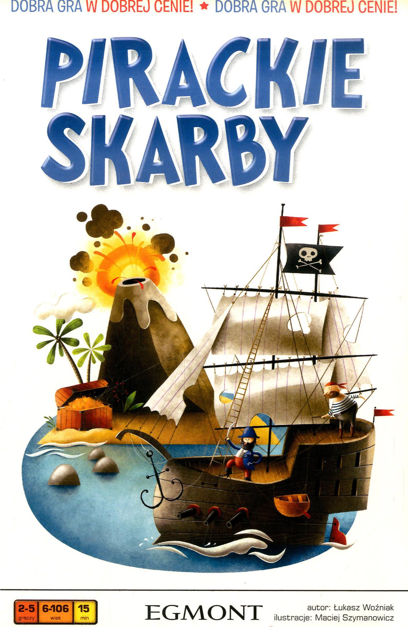 Pirackie skarby [Gra planszowa] / autor Łukasz Woźniak ; il. Maciej Szymanowicz. - Warszawa : "Egmont Polska", [2013]. - Pudełko : kafelki, znaczniki, mapa ; wym. pudełka 12,5x19,5x4 cm + instrukcja.