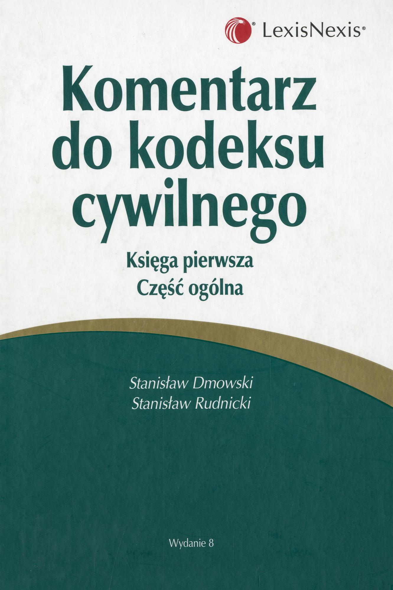 Komentarz do kodeksu cywilnego. Ks. 1. Część ogólna / Stanisław Dmowski, Stanisław Rudnicki. - Wyd. 8 stan prawny na dzień 1 października 2007 r. - Warszawa : "LexisNexis", 2007. - 515 s. ; 25 cm.
