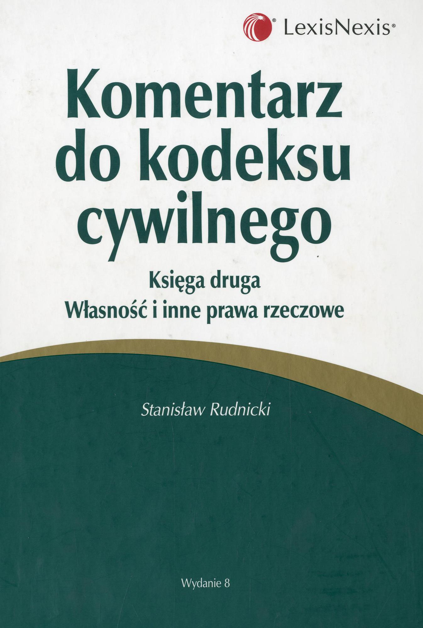 Komentarz do kodeksu cywilnego. Ks. 2. Własność i inne prawa rzeczowe / Stanisław Rudnicki. - Wyd. 8 stan prawny na dzień 1 października 2007 r. - Warszawa : "LexisNexis", 2007. - 578 s. ; 25 cm.